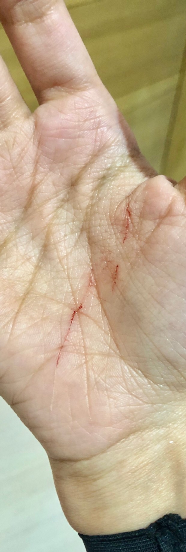 في خضم المعركة التي حلت والتي رُفعت بها الأسلحة والأثقال ، هرب بعض أحبابي هلعًا مما رأوا ، وبقيتُ أنا أحاول إخماد اللهيب بين الشياطين .. أصيبت يدي وقد سعد “المحارب” في داخلي لهذا الأثر الذي يُحكى للتاريخ .. وقد قُطعت جزءٌ من الملابس التي كنتُ أرتدي ..